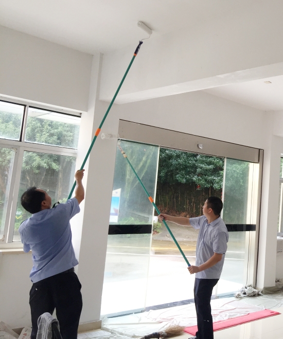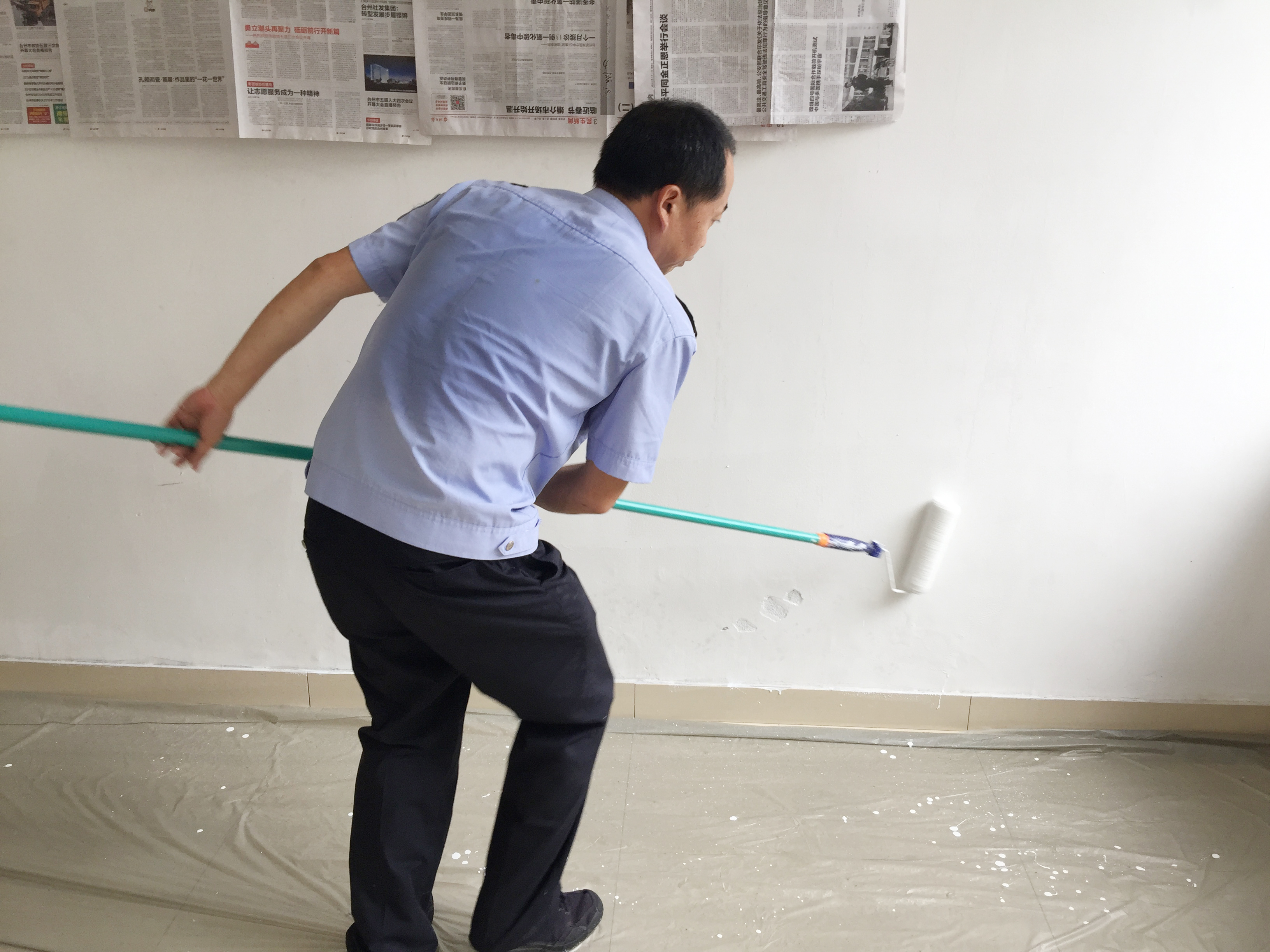 圖為“粉刷匠”粉刷現(xiàn)場(chǎng) 現(xiàn)場(chǎng),工具備齊后,大家捋起袖子開始動(dòng)工。家里正在裝修的林通,有著豐富的粉刷經(jīng)驗(yàn),指導(dǎo)大家如何將墻體粉刷得平整又美觀。分工明確后,有的拿起粉刷棒,有的攪拌涂料,有的鋪墊報(bào)紙及塑料紙,有的清理刷墻后殘留在地面的垃圾。整個(gè)勞動(dòng)過程中,各個(gè)動(dòng)作麻利,干勁十足。粉刷是個(gè)技術(shù)活,更是個(gè)力氣活,只見浸滿涂料的刷子在墻上揮舞著,個(gè)個(gè)汗如雨下,卻都顧不得休息,在大家的齊心協(xié)力下,原本一片灰不溜湫的墻壁變得雪白光潔。 這次義務(wù)勞動(dòng),不僅美化了站所環(huán)境,營(yíng)造出廉潔的工作氛圍,增強(qiáng)了員工的凝聚力和向心力,更增加了全體員工對(duì)公司的一份熱愛。 林玲