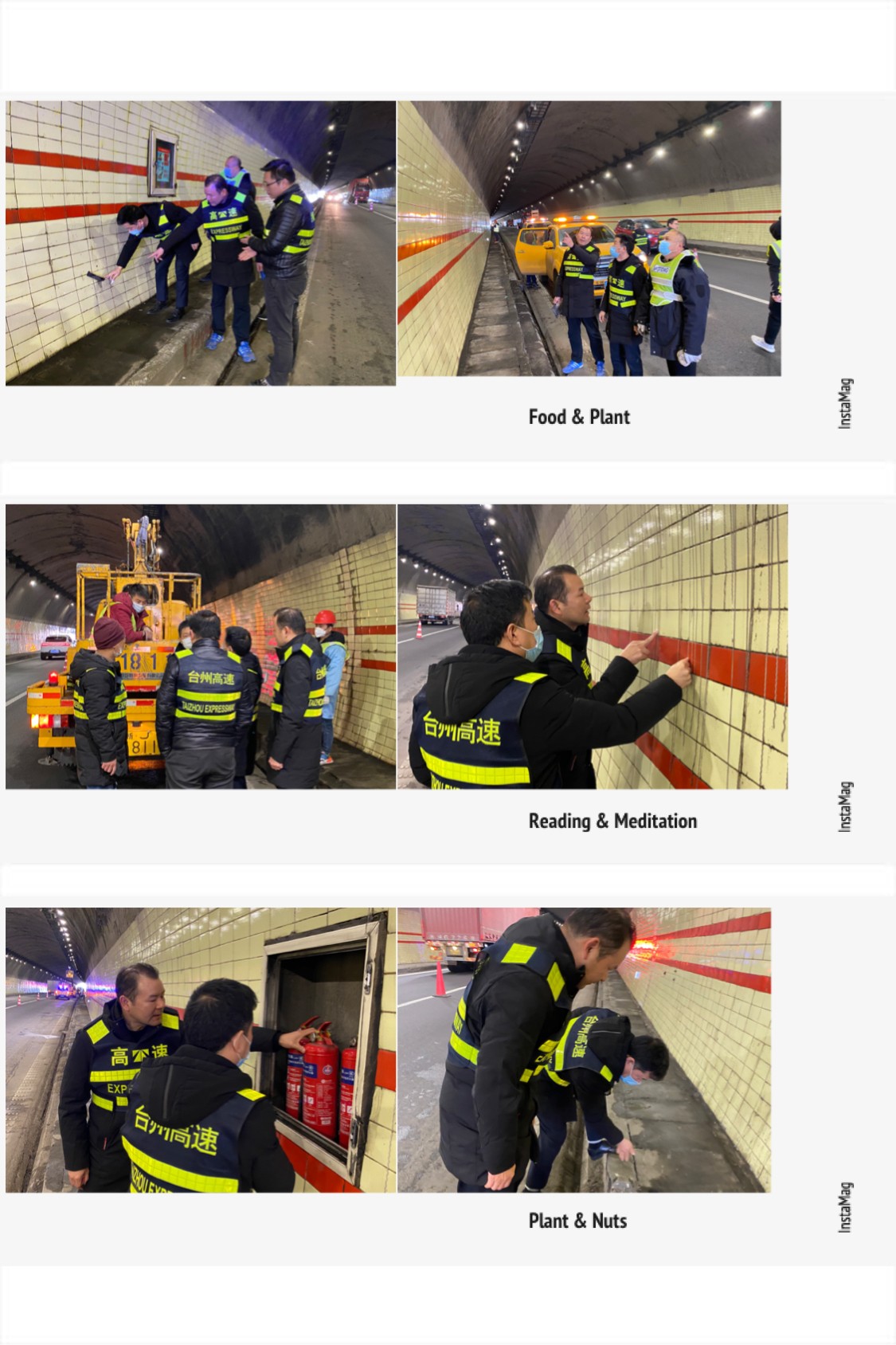 “洞口反光標牌再擦擦,這瓷磚用拖把搓一搓!” “隧道經擦洗顯得更亮堂了。”