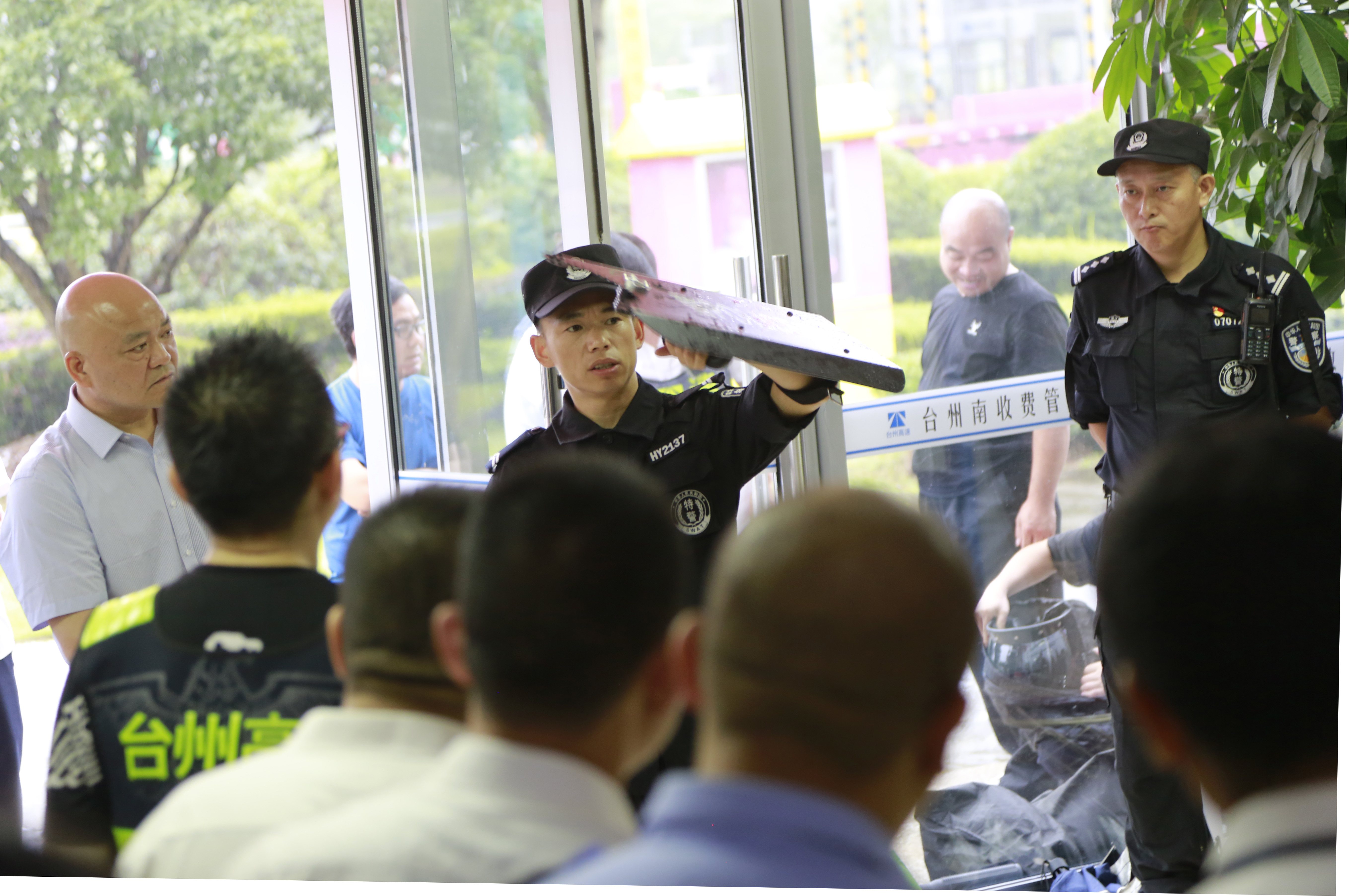 臺州高速集團組織開展防盜搶應急演練活動 6月25日上午,臺州高速集團在臺州南收費所組織開展防盜搶應急演練活動。各所、中心、子公司以及浙師大印象物業臺州分公司相關人員參加活動。集團副總經理章海峰、安全總監項同富到場觀摩演練。