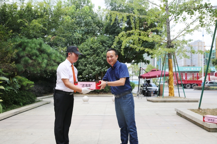 “這么熱的天氣,大家都辛苦啦!感謝你們的辛苦付出,高溫工作,一定要注意避免中暑。”集團副總經(jīng)理陳保衛(wèi)、羅小將、工會主席項義超、征費部負責人等相關(guān)人員,到房產(chǎn)公司、大溪嶺隧道所、溫嶺西、臺州南等收費所,為一線員工送上消暑物資,慰問堅守在酷暑下的工作人員。