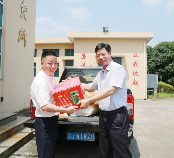 圖為走訪慰問匯通養護公司 “高溫酷暑,大家辛苦啦!高溫工作一定要注意自身身體,避免中暑。”由集團黨委書記、董事長、總經理陳文波,副總經理章海峰帶隊,分別對臺州高速交警支隊、臺州高速路政大隊、臺州收費所、施救中心、維養中心、監控中心、黃土嶺隧道所、臨海南收費所、匯通養護公司等地進行走訪慰問。