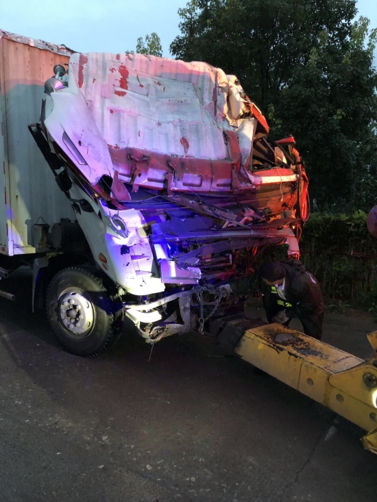 7點30分,經過半小時的努力,在輔查員在一旁指揮下,拖車用纜繩進行牽引,吊車配合,將車頭放置可以正常拖曳的地方。