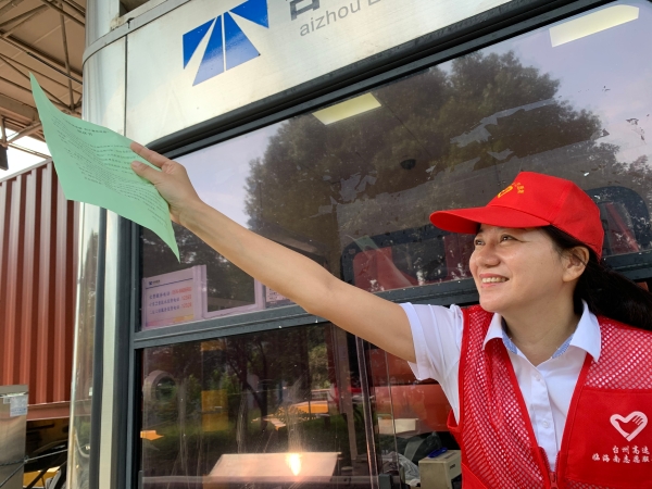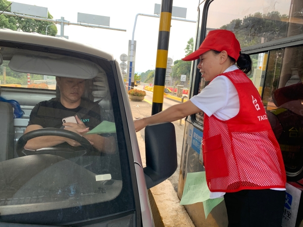 9月10日上午,臨海南收費(fèi)所志愿者身穿耀眼的紅馬甲,在車道出入口向過往司乘人員發(fā)放“弘揚(yáng)傳統(tǒng)美德,制止餐飲浪費(fèi)”倡議書,號(hào)召?gòu)V大司機(jī)從自己做起、從現(xiàn)在做起、從點(diǎn)滴做起,自覺抵制餐飲浪費(fèi),積極號(hào)召身邊的人傳承勤儉節(jié)約的良好家風(fēng),向全社會(huì)營(yíng)造“浪費(fèi)可恥、節(jié)約為榮”的深厚氛圍。