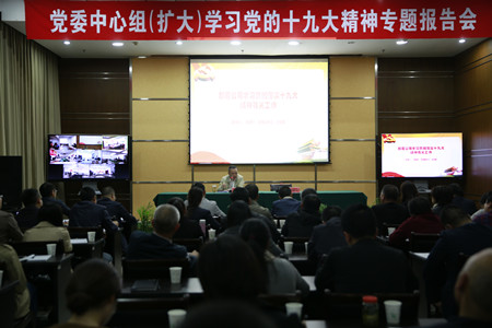 為了深入學(xué)習(xí)好、宣傳好、領(lǐng)悟好、落實好黨的十九大精神和習(xí)近平新時代中國特色社會主義思想,10月30日晚上,集團利用周一晚上的時間在天和大廈26樓召開了黨委中心組(擴大)學(xué)習(xí)會,特別邀請了市直機關(guān)工委副書記李欠梅做了題為《邁向新時代開啟新征程續(xù)寫新篇章》的專題解讀和輔導(dǎo)報告。集團黨委副書記、總經(jīng)理張建平對學(xué)習(xí)領(lǐng)會落實黨的十九大精神進行了全面部署,要求在集團上下迅速掀起學(xué)習(xí)熱潮,廣大員工要立足崗位加油,推動集團實現(xiàn)“浴火重生謀新篇”的目標。大樓全體員工參加現(xiàn)場會議,各所、中心的非當班員工通過遠程視頻會議系統(tǒng)同步收看輔導(dǎo)講座。