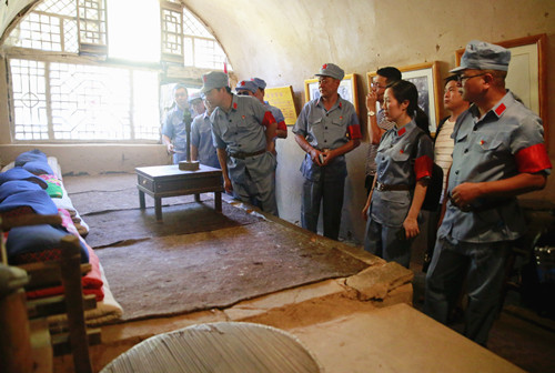 圖為黨員參觀梁家河知青點的窯洞