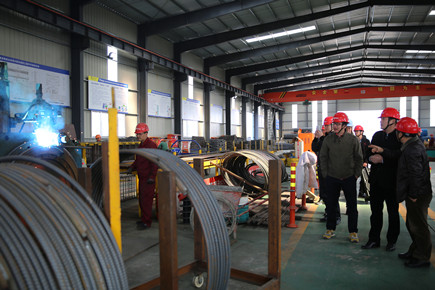 圖為在T梁預(yù)制廠觀看工人綁扎鋼筋